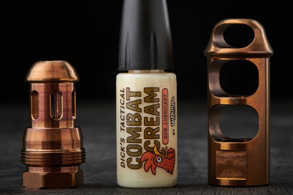 Combat Cream keeps your weapon slick, loyal, and ready for action. Grease based, water resistant, and white. Because your rifle deserves foreplay too. Just don't eat it, unless you're into that sort of thing.